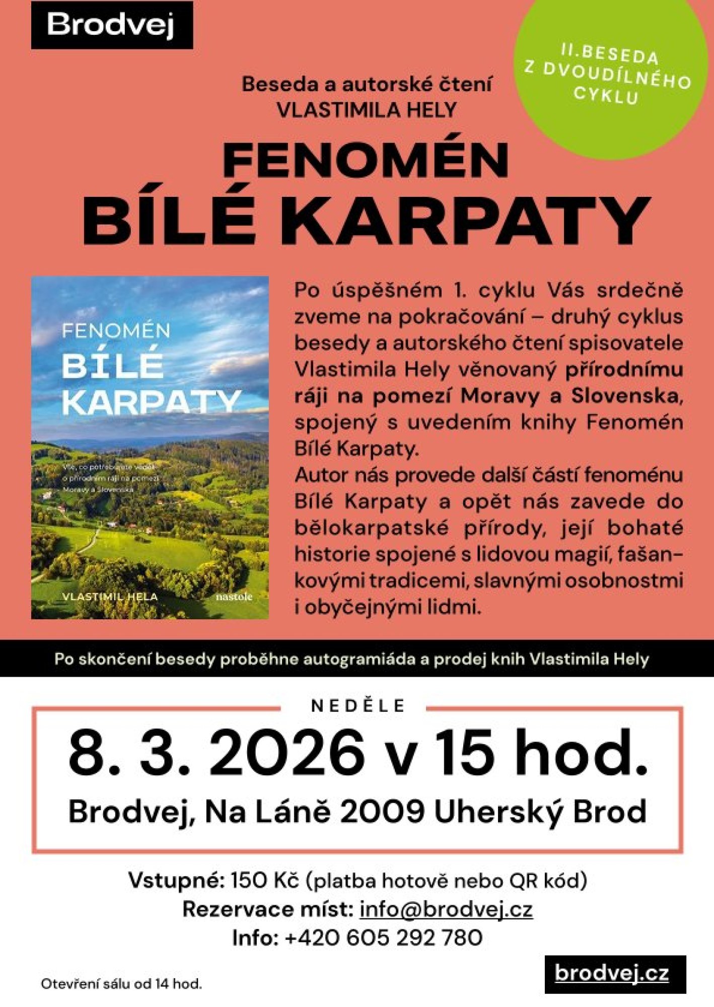 Srdečně zveme na pokračování - druhý cyklus besedy a autorského čtení spisovatele Vlastimila Hely věnovaný přírodnímu ráji na pomezí Moravy a Slovenska, spojený s uvedením knihy Fenomén Bílé Karpaty.