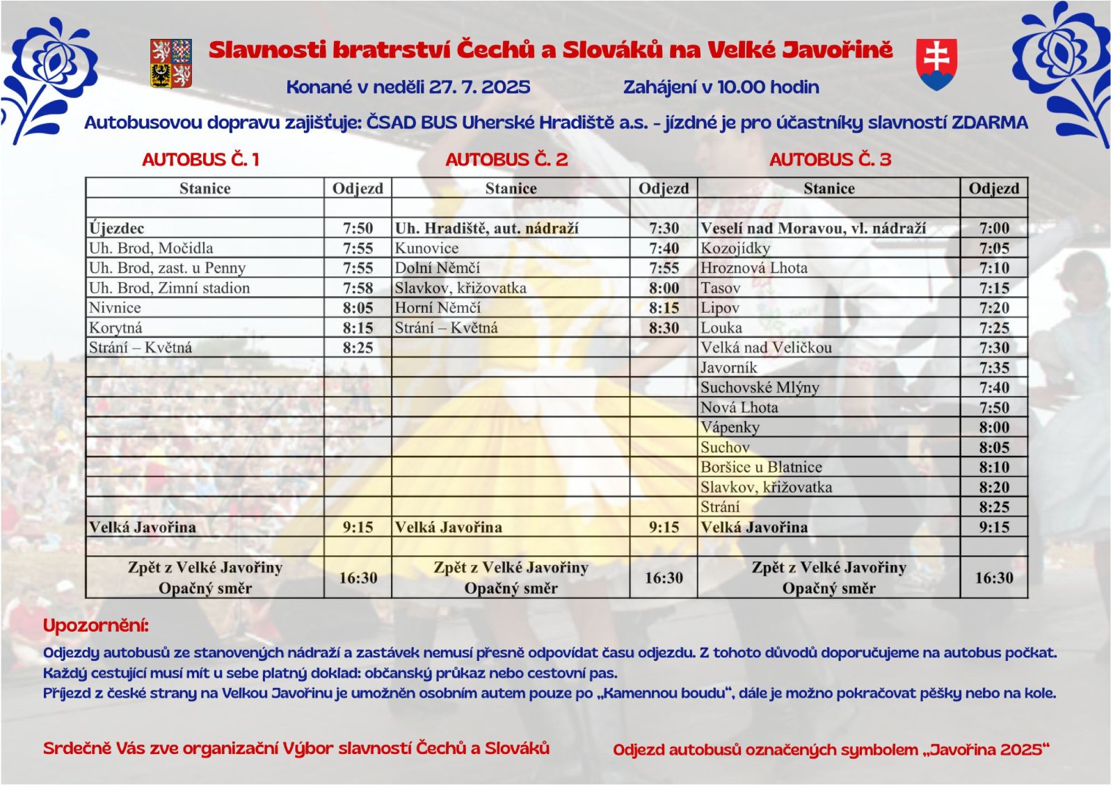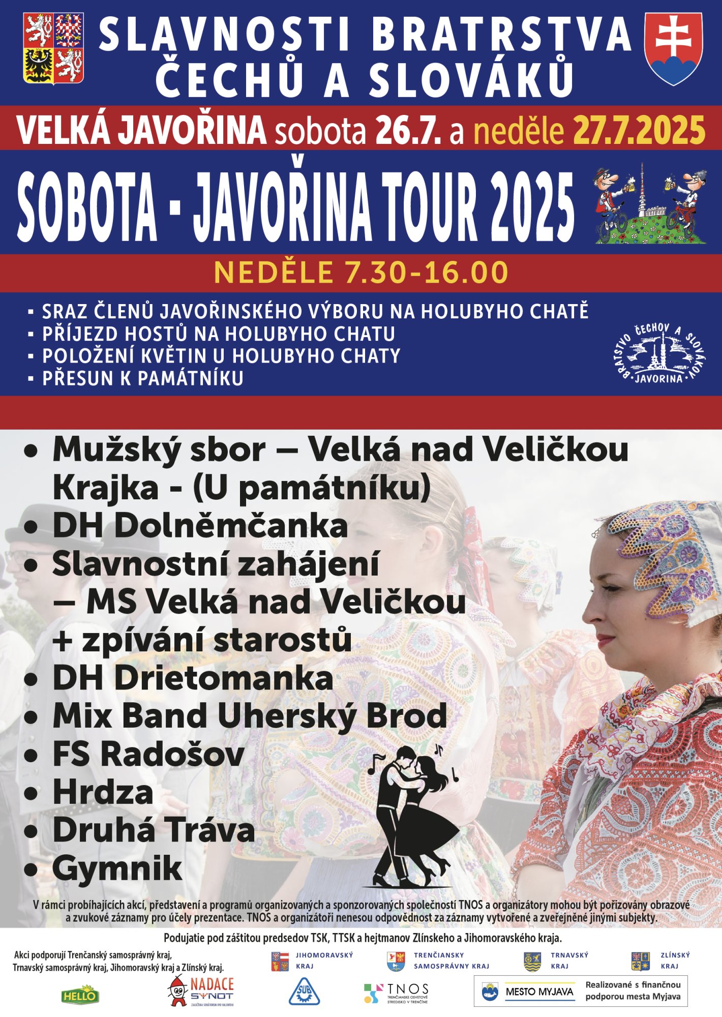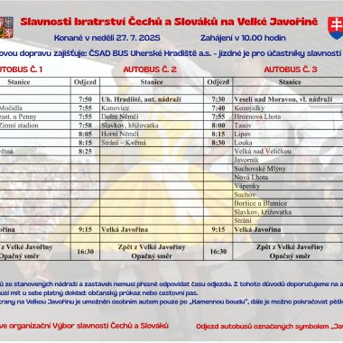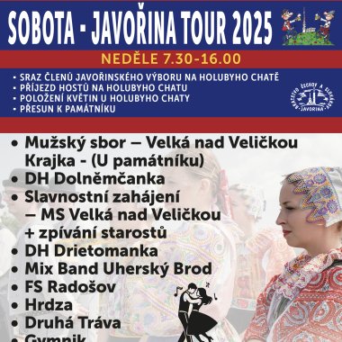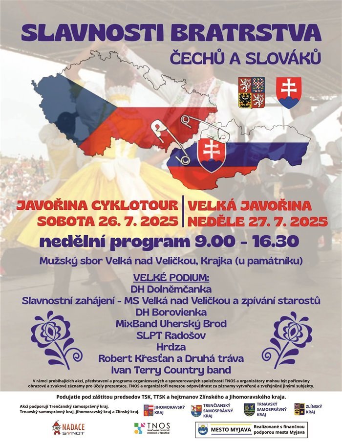 Poslední červencová neděle je i tento rok na Velké Javořině pevně spjatá se Slavnostmi bratrstva Čechů a Slováků. V sobotu 26.7.2025 se uskuteční cyklovýjezd Javořina Cyklotour a hlavní program proběhne v neděli 27.7.2025 od 9:00 do 16:30.