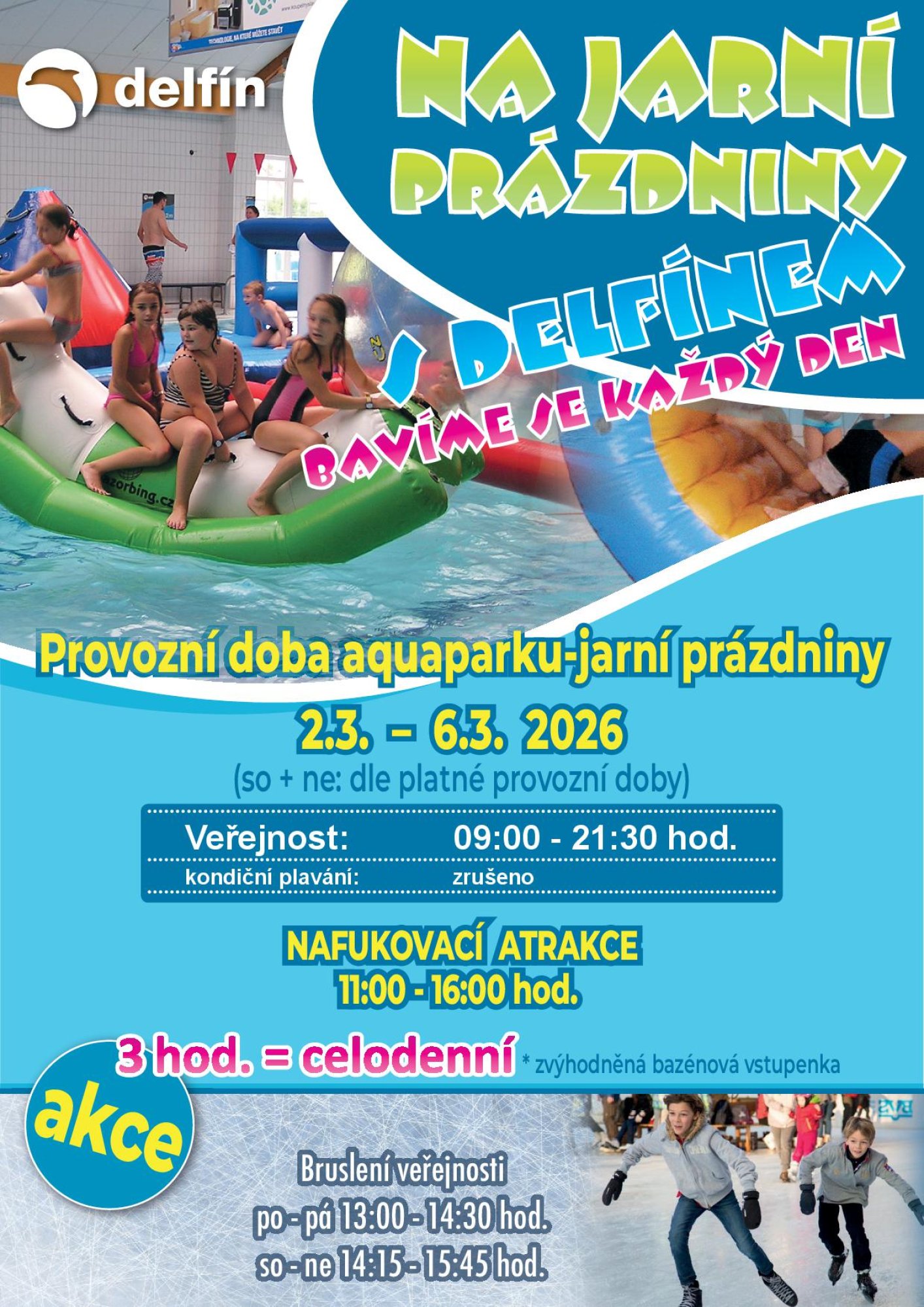 Provozní doba aquaparku – jarní prázdniny (2. 3.–6. 3. 2026):