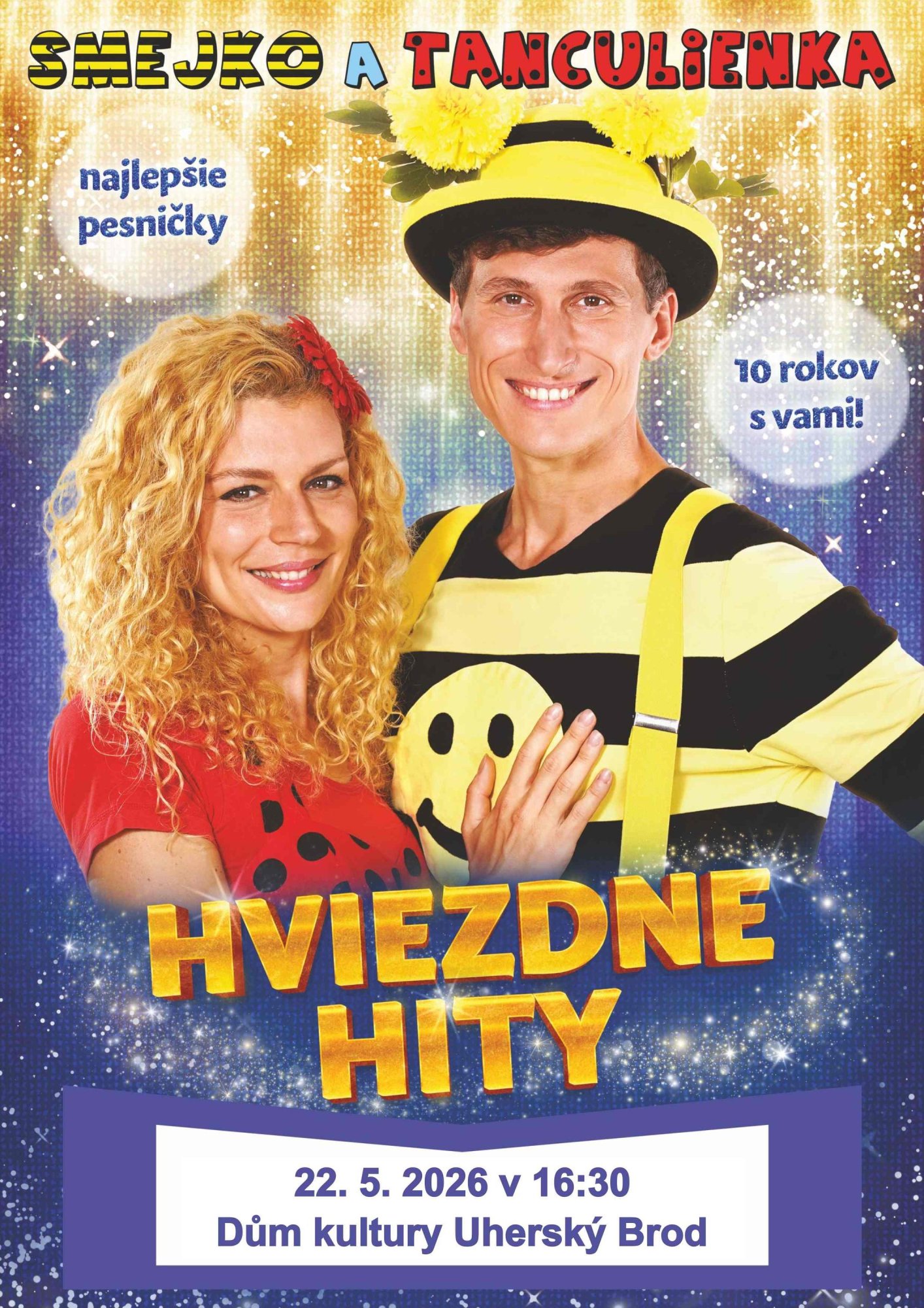 Nenechte si ujít Hviezdne hity ve výročním představení se Smejkem a Tanculienkou! Spolu s nimi samozřejmě dorazí i Huncúlik, Bumbác a Panpiano.