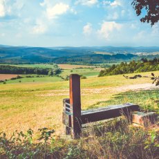 Od informačního střediska jsme se tedy vydali doleva po hlavní silnici a na konci vesničky, kde silnice uhýbá doprava dál, jsme pokračovali rovně okolo kříže a poté dál polní cestou do mírného stoupání (kolem solárních panelů na pravé straně). Za vesnicí jsme se napojili na žlutou trasu značenou velkým „S“ ve žlutém kroužku a šli jsme vstříc prvním dřevěným sochám.