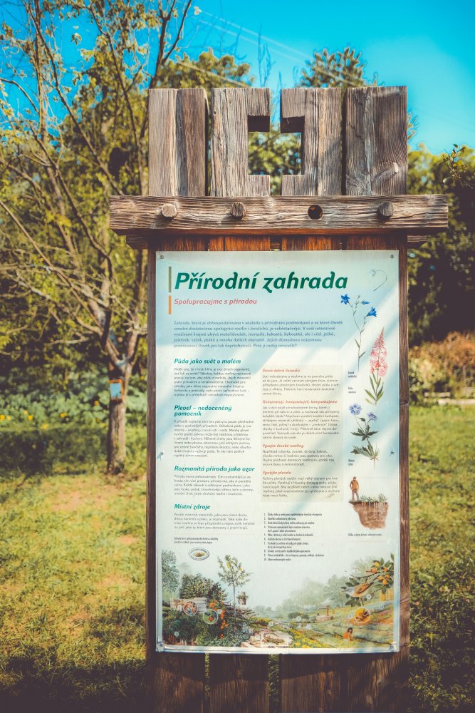 Zahrada je totiž koncipována tak, že si zde přijdou na své nejen děti, ale i dospělí. Děti určitě zaujmou hmyzí domečky, obydlí hadů a netopýrů, dřevěný xylofon nebo nejrůznější prolézací tunely a schovávačky. Dospělí zase ocení množství informačních panelů a nespočet cedulek s údaji o rostlinách, které jsou přivázány či zapíchnuty téměř u každého stromu a keře. V přední části zahrady se nachází lavičky a stoly, dřevěná lehátka či ohniště. Přes dřevěné mostky jsme se pak dostali do rozlehlého sadu, ve kterém jsou vedle sebe vysazeny nejrůznější druhy stromů. Protože se jedná o volně přístupnou plochu, není zde žádné omezení v podobě otevíracích hodin a vstupné do přírodní zahrady je tak zcela dobrovolné.