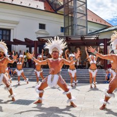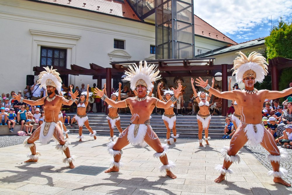 Skvěle namíchaný koktejl hudby, tance, krojů a zvyků ze čtyř kontinentů nabídlo ve středu 25. června Muzeum J. A. Komenského. V atriu se představily soubory z Katalánska, Kyrgyzstánu, africké Keni a Velikonočních ostrovů.