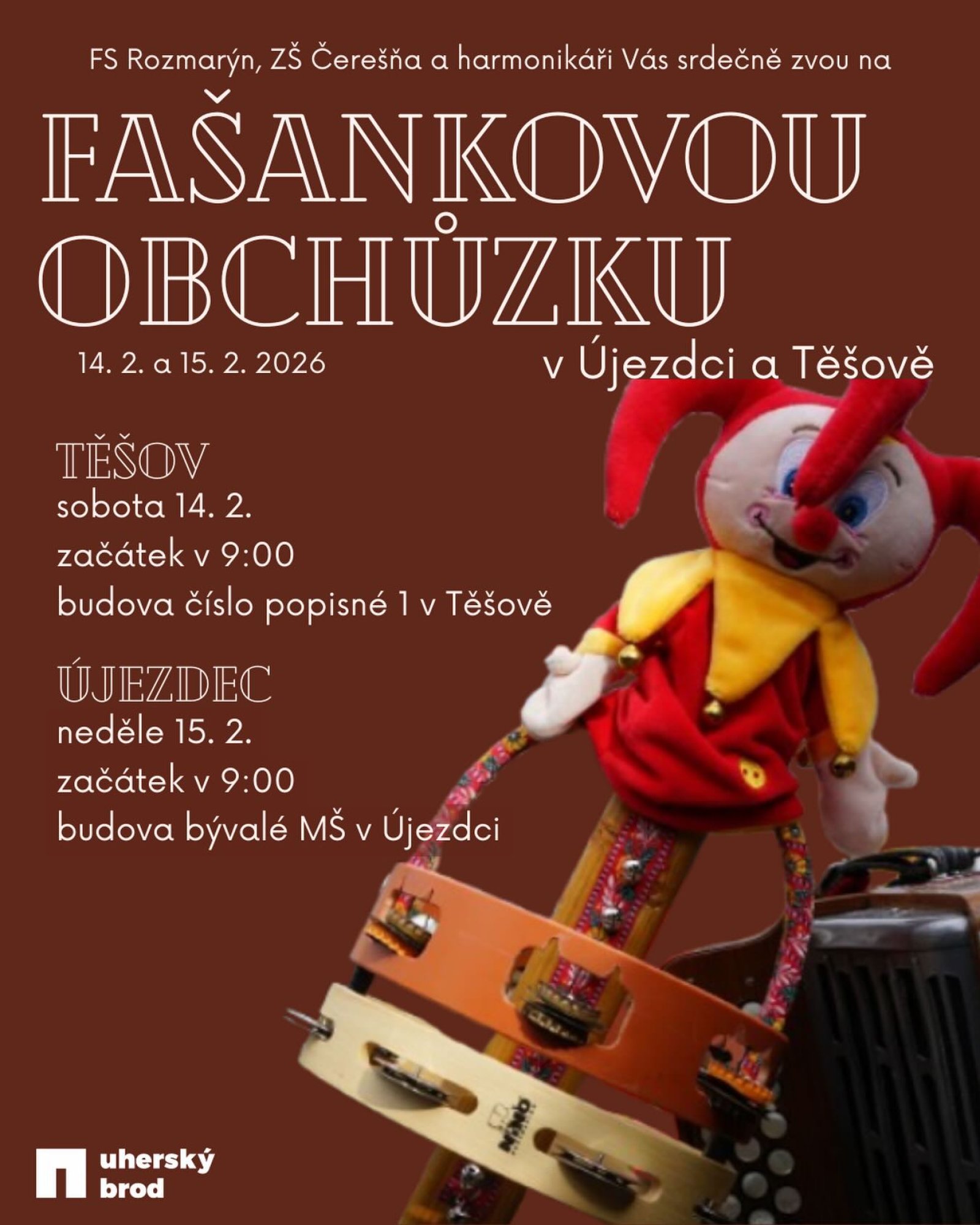 FS Rozmarýn, Ženský sbor Čerešňa a harmonikáři Vás srdečně zvou na dvoudenní putování ve fašankovém průvodu.
