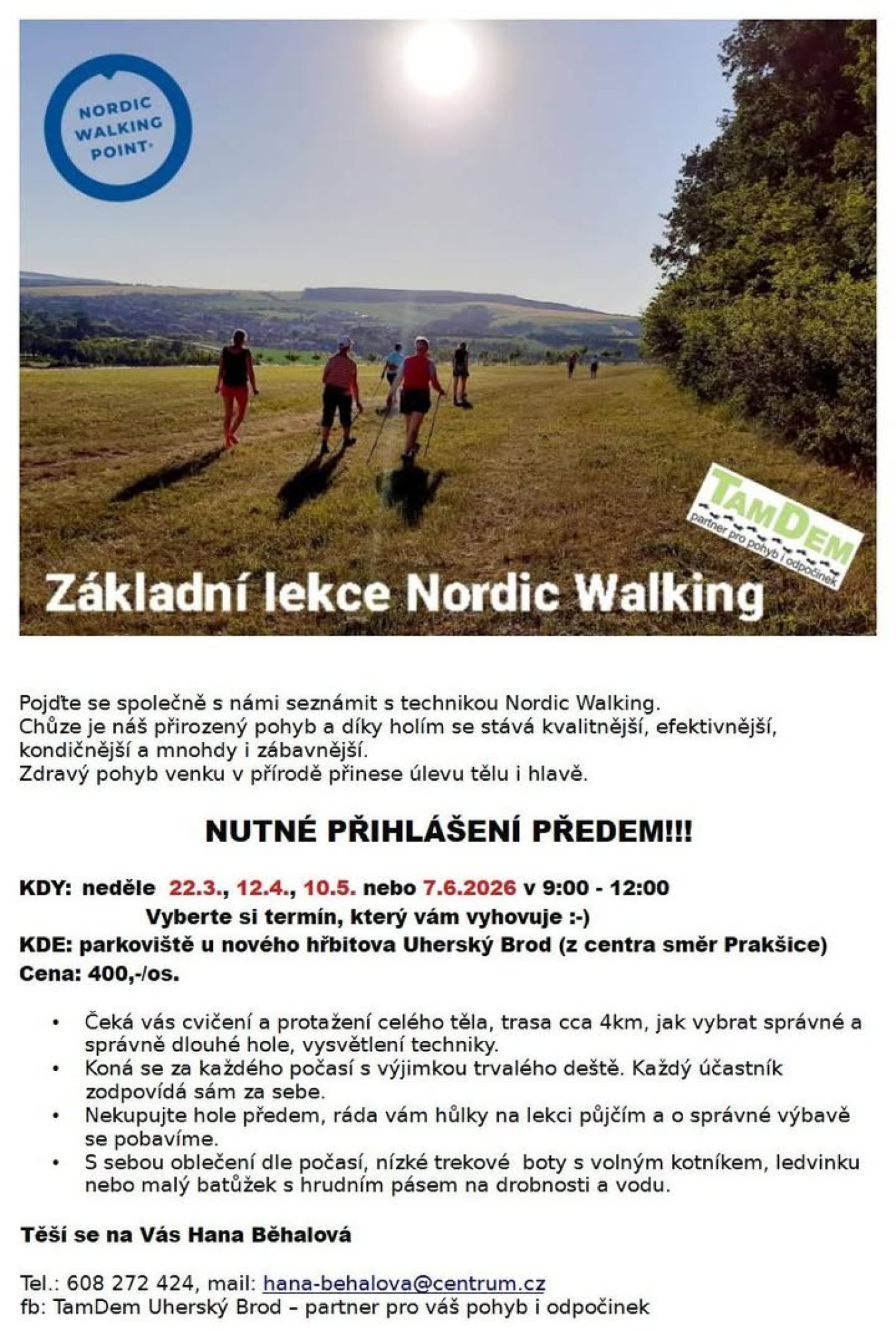 Instruktor: Hana Běhalová, tel.: 608 272 424, hana-behalova@centrum.cz