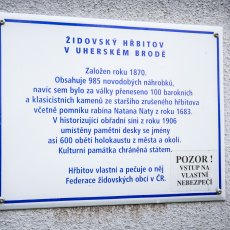 Východně od historického jádra města se nachází nový židovský hřbitov spolu s obřadní síní. Tato jediná celistvá nemovitá památka vypovídá o historii zdejší židovské komunity. Na území hřbitova je umístěno 1085 náhrobků ze žuly, mramoru a pískovce, často s cennou výzdobou a hebrejskými, německými a českými nápisy. Mezi náhrobky se nachází také pomník učeného rabína Natana Naty, zavražděného při ničivém nájezdu Kuruců v roce 1683.
