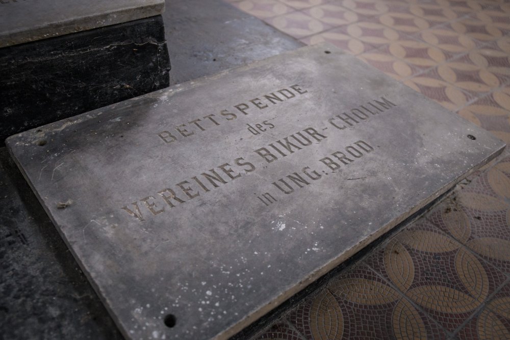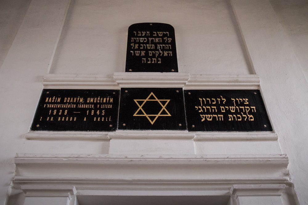 Interiér obřadní síně z roku 1906 pokrývají desky se jmény obětí holocaustu odhalené v roce 1948. Je zde také umístěna stálá expozice o historii uherskobrodské židovské komunity.