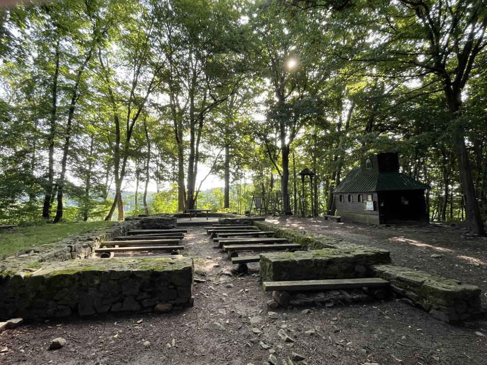 Pískovcové skalisko připomíná kazatelnu, r. 1972 na něm byl vztyčen kříž. Podle tradice sloužilo opravdu jako kazatelna moravskému arcibiskupovi Metodějovi a později augustiniánům z nedalekého kláštera. Skála je vysoká 8 m a z jejího vrcholu je široký výhled přes údolí Kyjovky (Stupavy) na protější hřeben Chřibů, nedalekou zříceninu hradu Cimburk a část Koryčanské přehrady. Nachází se na frekventované turistické stezce a je hojně navštěvována.