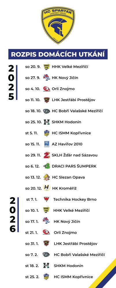 Termíny utkání HC Spartak Uherský Brod najdete zde.