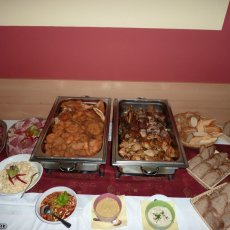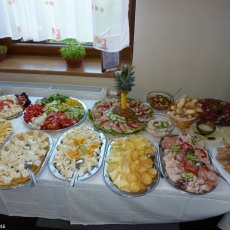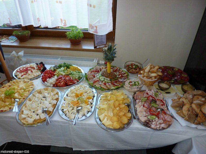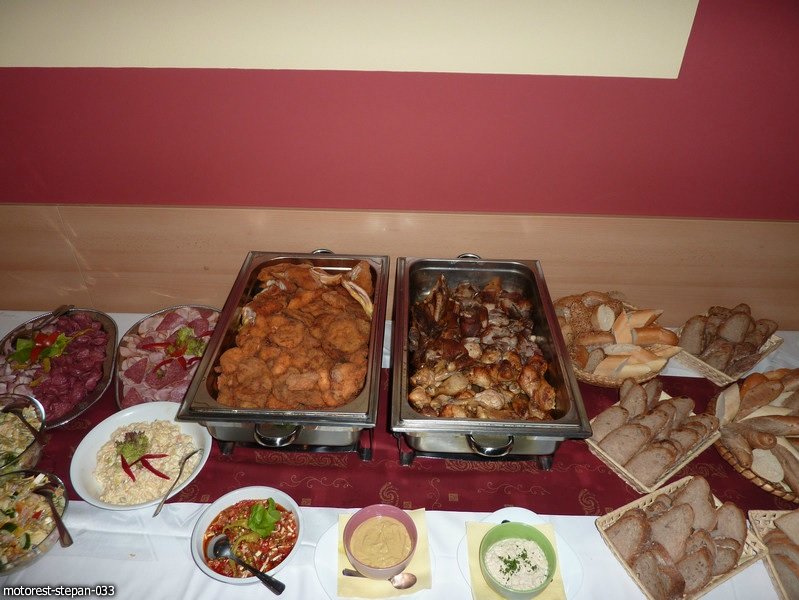 Každý den 4 druhy menu, teplá jídla po celý den, minutková kuchyně, speciality, grilovaná kolena, pizza. K dispozici klimatizovaný salonek pro 40 osob.