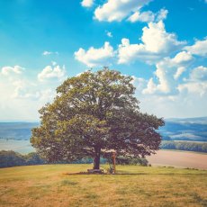 Poté nás cesta vedla zpět do kopce vstříc „Strážci“, u něhož jsme se napojili na červenou a po necelém kilometru jsme kolem lavičky ze šestého zastavení došli až ke „Strážcům kočičího hradu“ – musím přiznat, že tady jsme se zdrželi asi nejdéle. Zmátl nás zde počet rozcestí, cesta nebyla příliš dobře značená a samotné Strážce jsme hledali asi půl hodiny (víc ale prozrazovat nechci – právě díky tomuto hledání mám zastavení nejradši a nechtěla bych Vás o něj připravit). Stejnou cestou jsme se potom vrátili zpět a nadále jsme šli po červené trase. Vyšli jsme z lesa a na louce jsme potkali dva obrovské nádherné duby – u prvního byl svatý křížek a lavička s výhledem k sedmému zastavení červené trasy, u druhého jsme pak našli „Krávu“. Pokračovali jsme dál po červené kolem lesa přes hlavní příjezdovou silnici směrem k dalšímu zastavení, kde na nás na okraji remízku čekala „Sova“. Podél lesa jsme se vrátili zpět do Hostětína, kde jsme si ještě zašli na vlakové nádraží pro „Pohlednici“ a poté jsme se již vrátili po silnici zpět k autu.