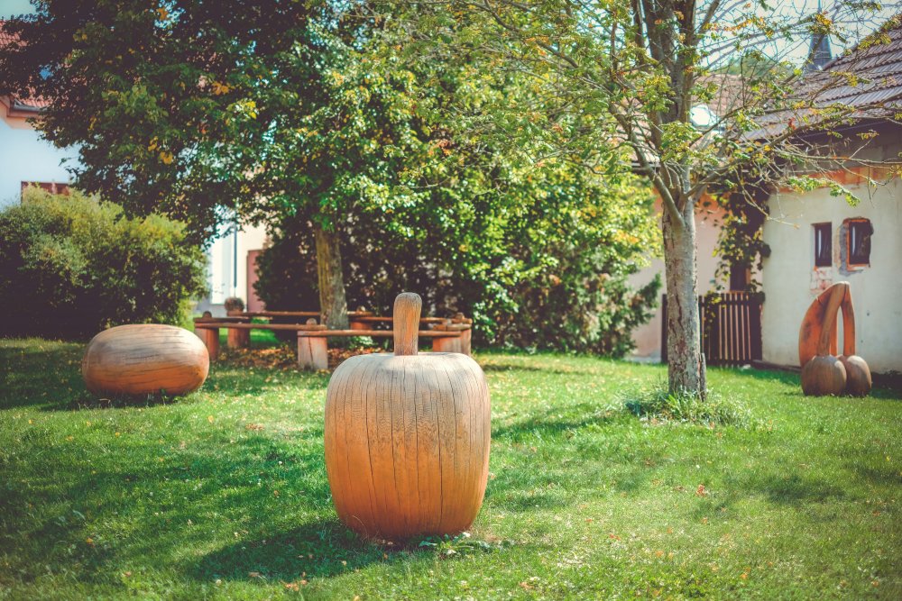 Naši procházku jsme začali právě u Centra Veronica – nejen z důvodu, že se budova nachází přímo u hlavní cesty, ale také proto, že se přímo vedle ní nachází i vyhlášená moštárna a hned za ní ukázková užitková zahrada, na kterou jsme se těšili snad ze všeho nejvíce.