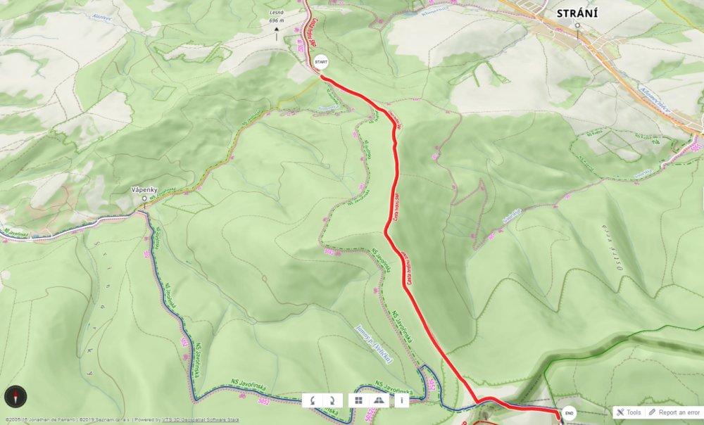 My jsme se rozhodli vypravit po červené turistické značce, o které jsme si mysleli, že bude pro pěší túru přijatelnější. Na zelené jsme navíc viděli mnoho cyklistů. Na naší trase jsme potkali také pár cyklistů, kteří mají náš obdiv. Trasa je podle nás obtížnějšího rázu i pro pěší. Proto pro úspěšné zvládnutí výpravy doporučuji pevnou obuv, s balerínami tady rozhodně nepochodíte!