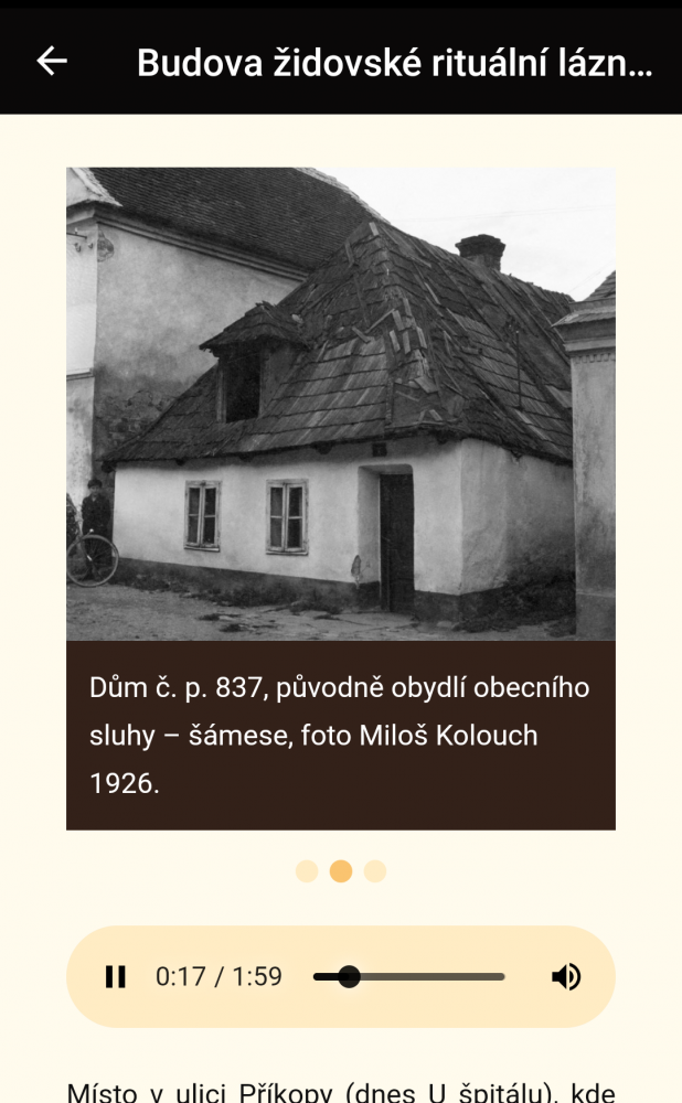 Tato mobilní aplikace vám na 8 zastaveních představí zaniklé židovské město. Ukáže vám, jak vypadala židovská čtvrť a běžný život v této čtvrti.