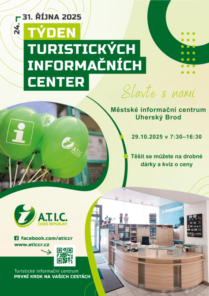 V pátek 24. října začíná šestý ročník Týdne turistických informačních center, který pořádá Asociace turistických informačních center ČR. V letošním roce se do něj zapojí přes 220 certifikovaných informačních center z celé České republiky a výjimkou nebude ani Městské informační centrum v Uherském Brodě, které si na středu 29. října pro návštěvníky kromě informací připravilo i kvíz o ceny a drobné upomínkové předměty.