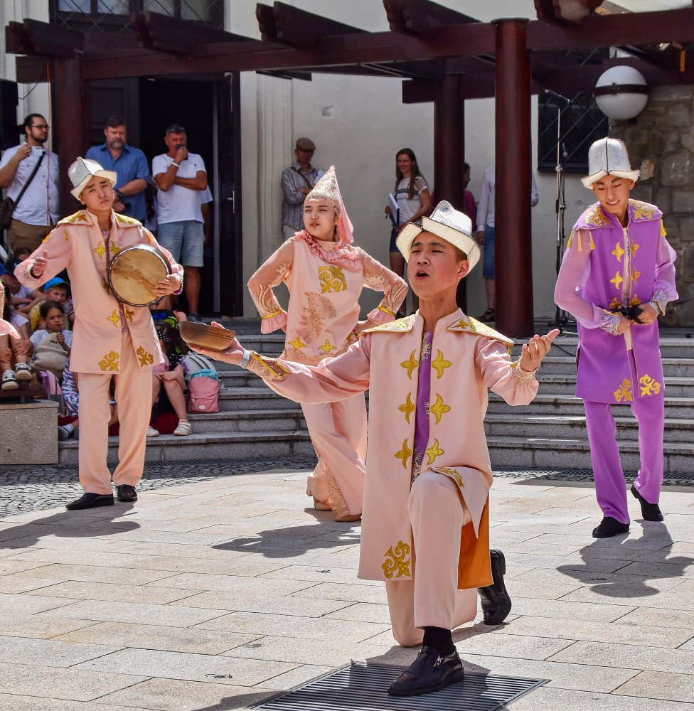 Skvěle namíchaný koktejl hudby, tance, krojů a zvyků ze čtyř kontinentů nabídlo ve středu 25. června Muzeum J. A. Komenského. V atriu se představily soubory z Katalánska, Kyrgyzstánu, africké Keni a Velikonočních ostrovů.